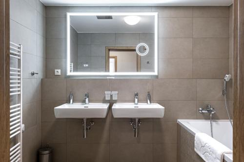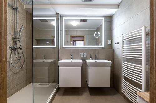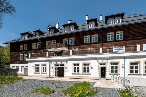 Boasting mountain views, Hubertus Karlova Studánka features accommodation with balcony, around 10 km from Praděd. There is an in-house restaurant, plus free private parking and free WiFi are available. The aparthotel has family rooms.