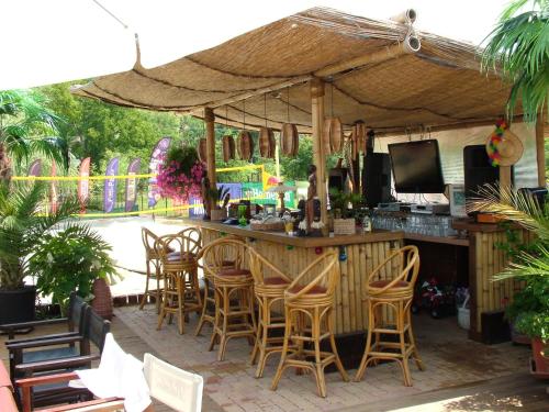 Guests can chill out in the on-site bar, while a minimarket is also available.