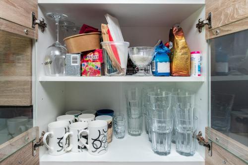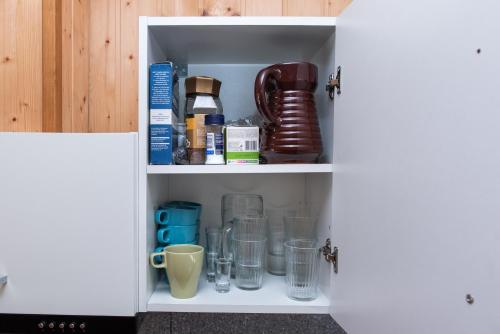Täysin varustetussa itsepalvelukeittiössä on astianpesukone ja mikroaaltouuni. Omassa kylpyhuoneessa on suihku. Kaikista huoneista on puutarhanäköala.