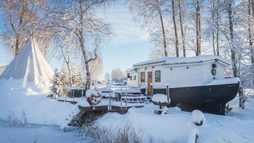Featuring river views, Cozy little house with sauna on a fishing boat provides accommodation with a bar and a balcony, around 3.1 km from Lydia Koidula Memorial Museum. This property offers access to a terrace, free private parking and free WiFi. The property is non-smoking and is located 4.5 km from Parnu Tallinn Gate.