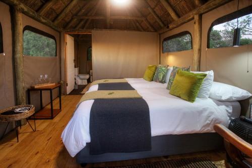 Vous pourrez réserver un forfait Bed & Breakfast ou une formule pension complète comprenant tous les repas et 1 activité en plein air par jour (nuitée) dans la réserve dans un véhicule ouvert d'observation du gibier, accompagné d'un garde-chasse qualifié. Les activités de plein air comprennent des safaris, des promenades en girafe, des promenades dans la brousse, l'observation des oiseaux et des expériences d'observation des étoiles. Du thé et du café sont disponibles toute la journée et des boissons sont servies au coucher du soleil.