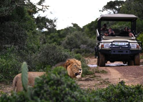 L'Elephants Lodge est situé dans la réserve forestière sans paludisme de Bellevue, où vivent des animaux sauvages tels que des lions et des buffles. Le lodge dispose de jardins naturels, d'une terrasse et d'un salon donnant sur les vastes plaines ouvertes du Cap oriental.