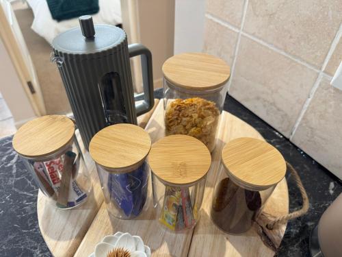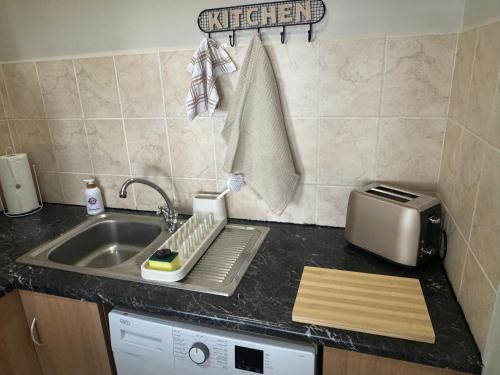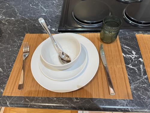 Cet appartement compte 1 chambre, une cuisine avec un réfrigérateur et un four, une télévision à écran plat, un coin salon, ainsi que 1 salle de bains comportant une douche.