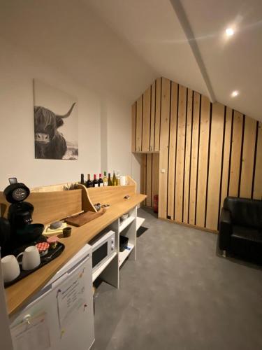 La kitchenette est pourvue d’un réfrigérateur, d’un micro-ondes et d’un grille-pain. Elle est également dotée d’une machine à café et d’une bouilloire.