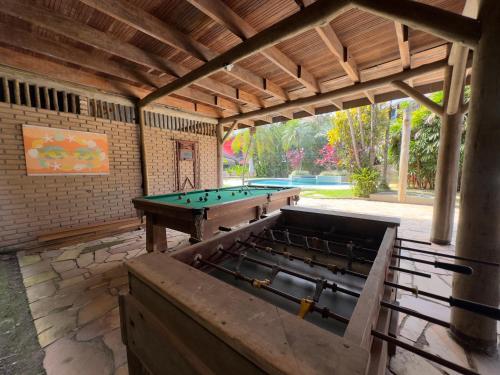 L’établissement Pousada North Shore Maresias - 2 quadras da praia - Casas de 2 quartos - 80 m2 -2 banheiros -piscina sauna - estacion-churrasq privativa -wifi animais de peq porte roupa de cama e banho assure un service de location de vélos, et vous pourrez jouer au billard sur place.