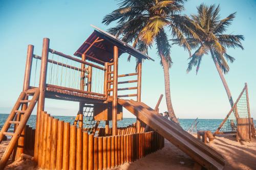 The daily breakfast buffet offers a variety of fresh fruits, breads, and cold meats. Guests can also enjoy Brazilian and traditional specialties, as well as a selection of drinks at the Dona Ana Restaurant, which provides panoramic ocean views.