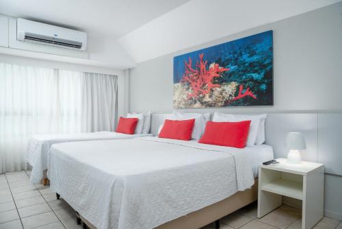 All rooms at Hotel Ponta Verde Maceió are equipped with air conditioning and feature a TV, minibar, and private bathroom with a hairdryer. They are bright and modern, and some rooms boast sea views.