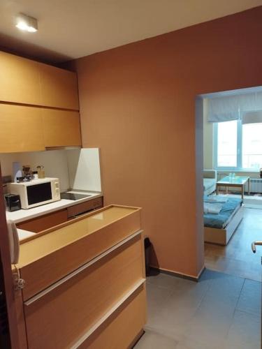 Cet appartement avec climatisation comporte 1 chambre, une télévision à écran plat, ainsi qu’une cuisine avec un réfrigérateur et un four.