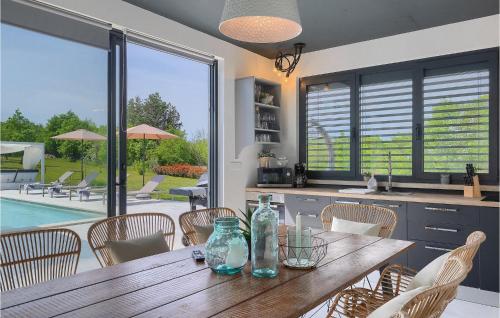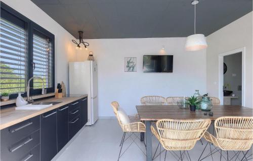 Cette maison de vacances avec climatisation comporte 3 chambres, une télévision, ainsi qu’une cuisine avec un réfrigérateur et un lave-vaisselle.