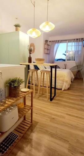 Cet appartement comporte 1 chambre, une télévision à écran plat, ainsi qu’une cuisine.