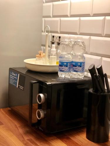 Cet appartement avec climatisation se compose de 2 chambres, d'un salon, d'une cuisine entièrement équipée avec un réfrigérateur et une machine à café, ainsi que de 2 salles de bains avec une douche et des articles de toilette gratuits. Des serviettes et du linge de lit sont à disposition.
