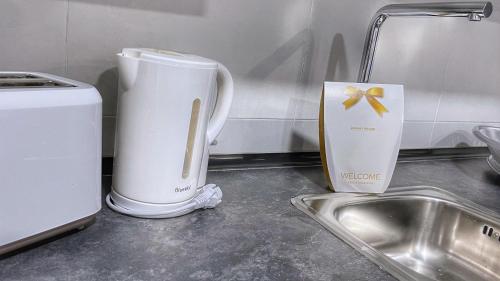 Cet appartement comporte 2 chambres, une télévision à écran plat, ainsi qu’une cuisine.