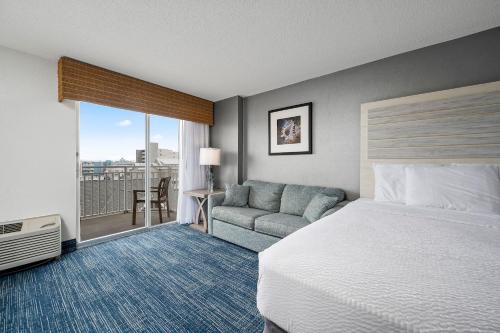 Each spacious room at Hotel Monte Carlo offers a 50-inch flat-screen TV and work desk. A seating area and a coffee machine is provided. Select rooms have a private balcony with ocean views.