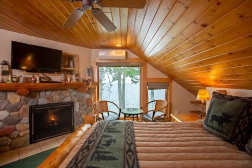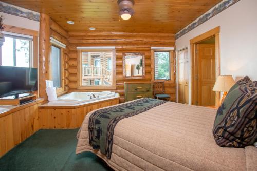Chaque hébergement de style bois du nord du Grand Superior Lodge dispose d'une télévision à écran plat. Elle comprend également un four micro-ondes et un réfrigérateur. Certains hébergements possèdent un balcon et une cheminée.