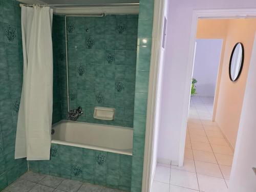 Cet appartement comporte 1 chambre, une télévision à écran plat, la climatisation et un salon.