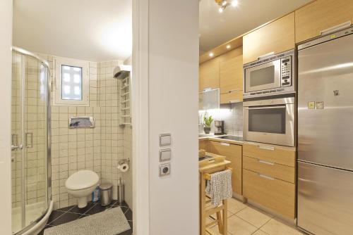 Cet appartement avec climatisation se compose de 1 chambre, d'un salon, d'une cuisine entièrement équipée avec un réfrigérateur, ainsi que de 1 salle de bains avec une douche et un sèche-cheveux. Des serviettes et du linge de lit sont à disposition.