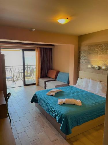 Certaines chambres donnent sur le jardin, d'autres offrent une vue sur la mer Ionienne. Le superbe jardin à la végétation luxuriante et la piscine sont propices à la détente.