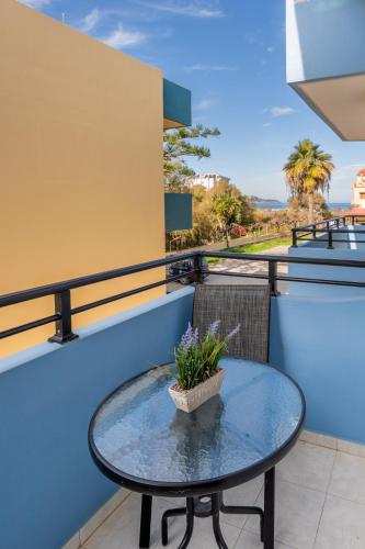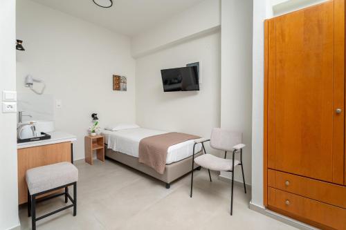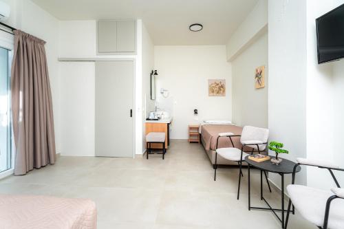 The bright and modern rooms at the Emi Seaside feature a mini fridge. Air conditioning, safe and a TV are included.