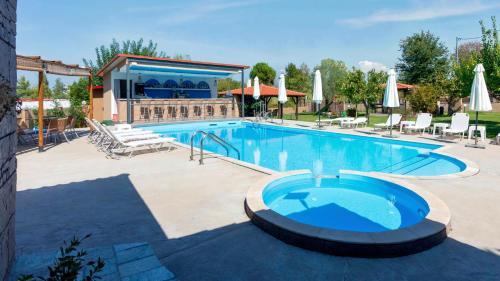 Chaque hébergement est pourvu d’un balcon avec vue sur la piscine et d’une télévision par satellite. Vous bénéficierez également d’une kitchenette bien équipée, ainsi que d’une salle de bains privative comprenant une douche et un sèche-cheveux. Un réfrigérateur et un four sont également disponibles, de même qu’une machine à café et une bouilloire.