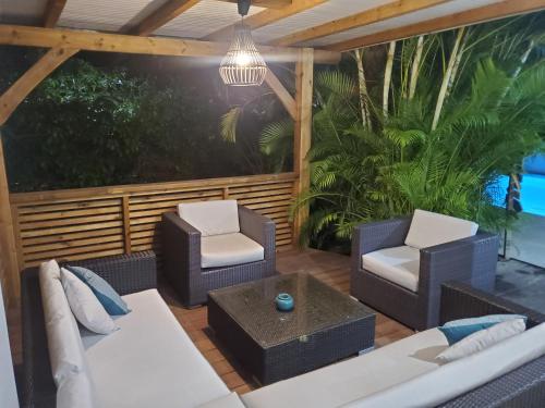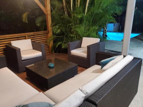 Offrant une vue sur le jardin, l’hébergement Villa l'Anjou Créole à Sainte Anne en Guadeloupe avec piscine privée et 3 chambres pour 6 personnes possède une piscine extérieure et un balcon, à environ 1,6 km de ce lieu d’intérêt : Plage de Bois Jolan. Cette maison de vacances comprend une piscine privée, un jardin, un barbecue, un parking privé gratuit et une connexion Wi-Fi gratuite.