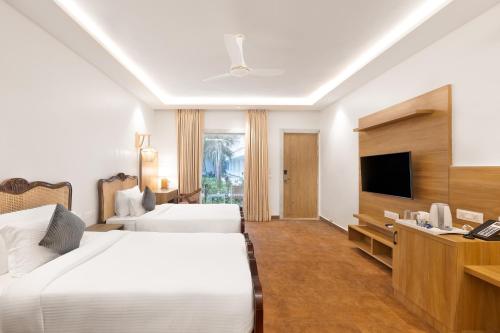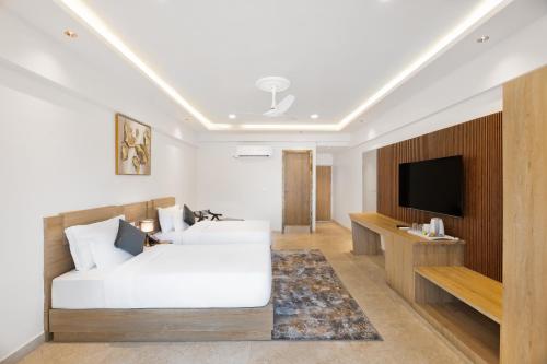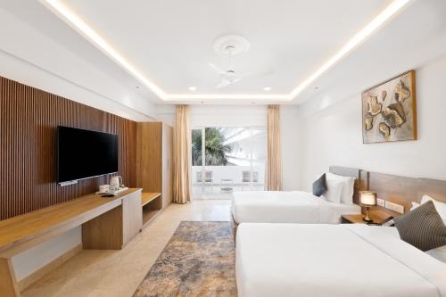 Situé à Morjim, l’établissement White Wharf Beach Resort Morjim Goa comprend une piscine extérieure, une salle de sport, un jardin et une terrasse. De nombreux équipements et services sont fournis sur place, notamment un restaurant, un service d'étage, une réception ouverte 24h/24 et une connexion Wi-Fi gratuite disponible dans l'ensemble des locaux. Vous pourrez profiter d'un bar.
