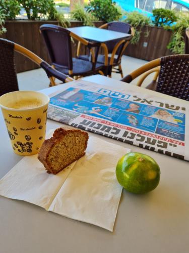 Un petit-déjeuner israélien est servi tous les jours, composé de salades fraîches, d'œufs, de fromage, de fruits et de boissons. Vous trouverez de nombreux restaurants dans les environs.