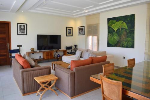Cette villa avec climatisation se compose de 1 chambre séparée, d'un salon, d'une cuisine entièrement équipée, et de 3 salles de bains. Une télévision à écran plat est disponible.