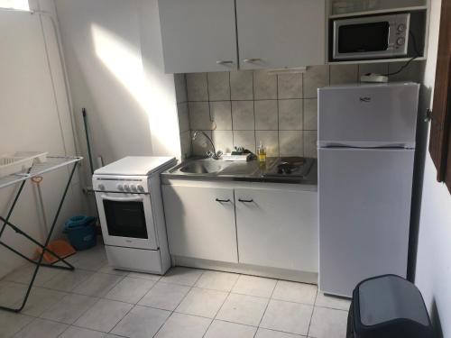 Un réfrigérateur, un micro-ondes et une plaque de cuisson sont également à votre disposition dans la cuisine, de même qu’une machine à café.