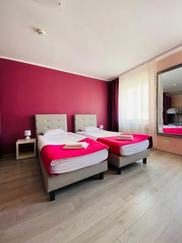 Les chambres sont meublées simplement et décorées dans des couleurs vives. Elles donnent accès à une salle de bains commune, à une cuisine commune, à du matériel de repassage et à un sèche-cheveux. Certaines chambres offrent une vue sur la vieille ville.