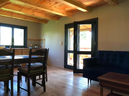 Ce chalet avec climatisation se compose de 2 chambres séparées, d'un salon, d'une kitchenette entièrement équipée, et de 1 salle de bains.