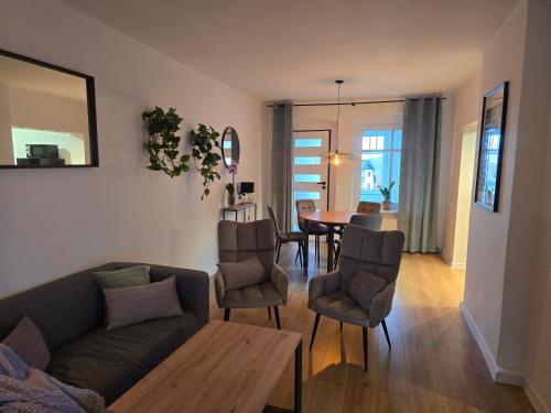 Cet appartement se compose de 2 chambres, d'un salon, d'une cuisine entièrement équipée avec un réfrigérateur et une machine à café, ainsi que de 1 salle de bains avec une baignoire et un sèche-cheveux. Des serviettes et du linge de lit sont à votre disposition.