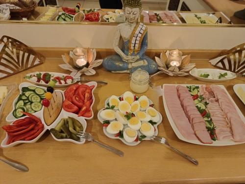 Un petit-déjeuner buffet, continental et végétarien est servi sur place.