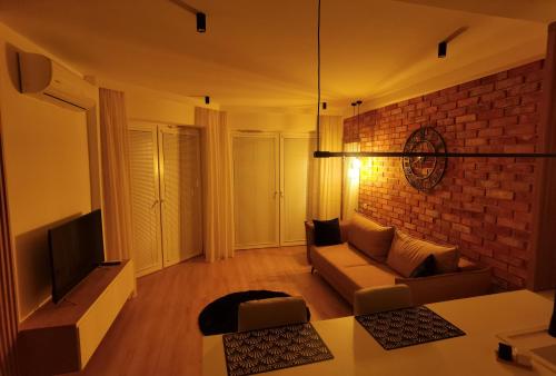 Cet appartement avec climatisation se compose de 1 chambre, d'un salon, d'une cuisine entièrement équipée avec un réfrigérateur et une bouilloire, ainsi que de 1 salle de bains avec une douche et un sèche-cheveux. Des serviettes et du linge de lit sont à votre disposition.