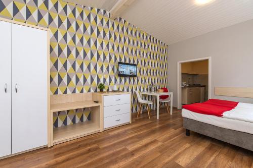 Certains hébergements possèdent une kitchenette équipée d’un réfrigérateur et d’une plaque de cuisson.