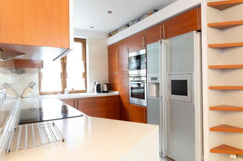 Cet appartement avec climatisation se compose de 3 chambres, d'un salon, d'une cuisine entièrement équipée avec un réfrigérateur et une machine à café, ainsi que de 2 salles de bains avec une douche et un sèche-cheveux. Des serviettes et du linge de lit sont à votre disposition.