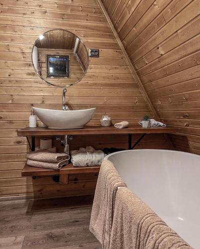 Ce chalet compte 2 chambres, une cuisine avec un réfrigérateur et un four, une télévision à écran plat, un coin salon, ainsi que 2 salles de bains possédant une baignoire. Des serviettes et du linge de lit sont à disposition.