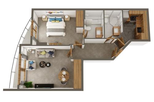 Vous pourrez également profiter d’un accès au club de bien-être proposant une piscine, un sauna, un hammam et des soins de beauté. Pour tout séjour de plus de 7 nuits, vous bénéficierez de billets d’accès pour la salle de sport, le club de bien-être et la piscine. Le nombre de billets dépend du type d’appartement que vous réservez.