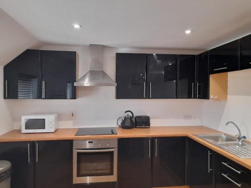 Cet appartement comporte 2 chambres, une télévision à écran plat, ainsi qu’une cuisine.