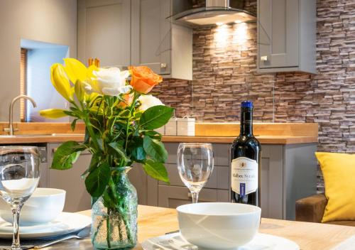 L'hébergement comporte également une cuisine bien équipée avec un réfrigérateur, un lave-vaisselle et un four, ainsi que un sèche-cheveux.