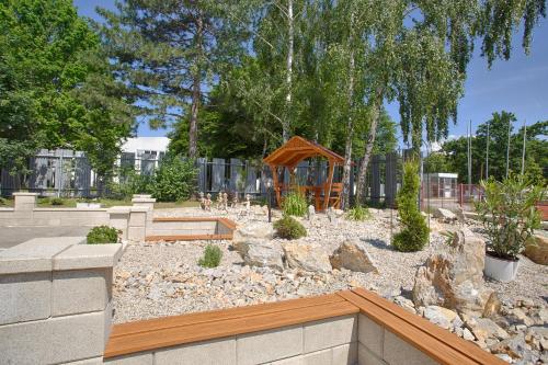 Le magasin de vin de Nitra Wines et un jeu d'échecs en plein air sont également disponibles.
