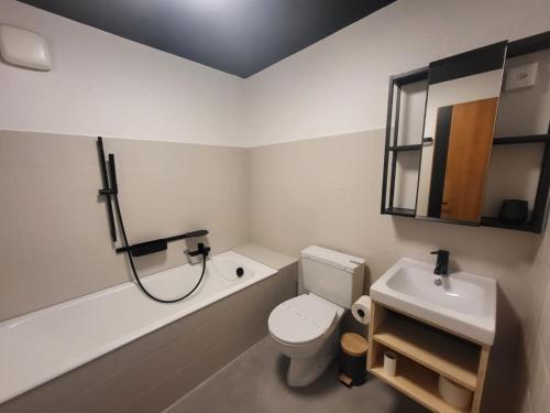 Cet appartement comprend 2 chambres, ainsi qu’une cuisine avec un réfrigérateur, un lave-vaisselle et une bouilloire.