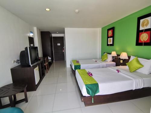 Le Twin Hotel se trouve à 30 minutes en voiture de l'aéroport international de Phuket et à 5 minutes de route de la principale gare routière. En voiture, vous rejoindrez un centre commercial en 15 minutes et la plage de Patong en 30 minutes.