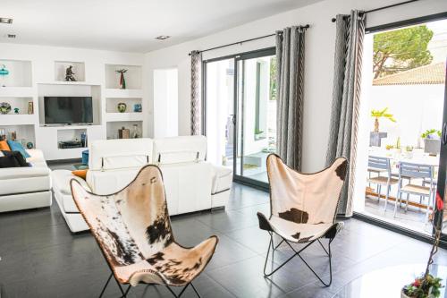 The spacious villa features 3 bedrooms, 2 bathrooms, bed linen, towels, a TV, a dining area, a fully equipped kitchen, and a terrace with city views.