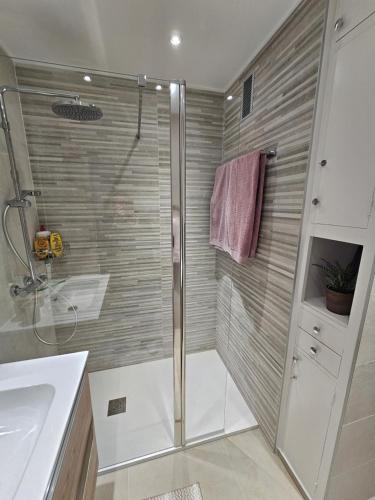 The apartment with a balcony and sea views features 1 bedroom, a living room, a flat-screen TV, an equipped kitchen with a dishwasher and an oven, and 1 bathroom with a walk-in shower. Guests can take in the ambience of the surroundings from an outdoor dining area. At the apartment, there is a dressing room for guests to change in.