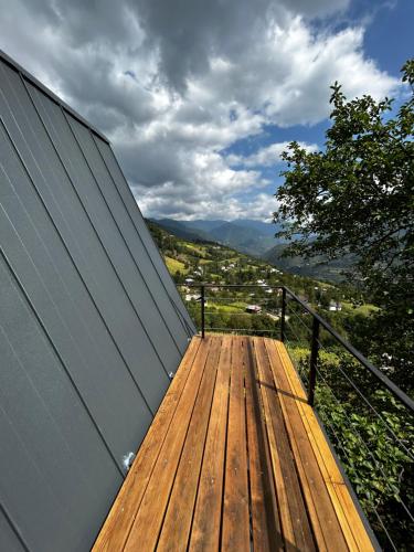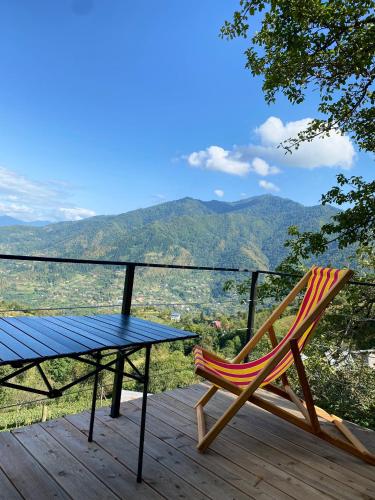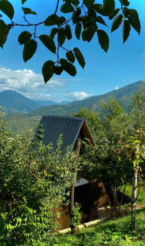 The holiday home with a terrace and mountain views has 1 bedroom, a living room, a flat-screen TV, an equipped kitchenette with a microwave and a fridge, and 1 bathroom with a bath. The accommodation is non-smoking.