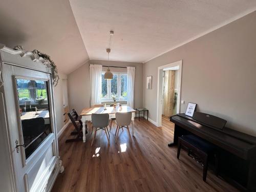 The holiday home is equipped with 2 bedrooms, 1 bathroom, bed linen, towels, a flat-screen TV with streaming services, a dining area, a fully equipped kitchen, and a terrace with garden views. Guests can take in the ambience of the surroundings from an outdoor dining area or keep themselves warm by the fireplace on colder days. For added privacy, the accommodation has a private entrance and soundproofing.