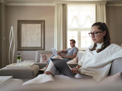 The large SPA-ROSA wellness area includes Finnish saunas, steam rooms and a hot tub. The heated pool is open throughout the year.