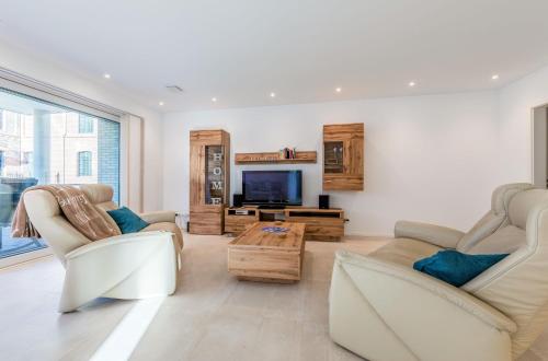 Featuring a sauna, Pusteblume - Barrierefreie 5-Sterne-Ferienwohnung mit Seeblick und Sauna is located in Malchow. It is set 6 km from Fleesensee and provides a lift. Providing free WiFi throughout the property, the non-smoking apartment features a sauna.