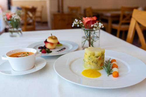The hotel features certain rooms that include a balcony, and each room is equipped with a private bathroom with a shower and free toiletries. At Hotel Das Bayerwald, the rooms come with a flat-screen TV with cable channels.