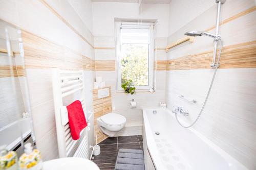 Offering quiet street views, Modernes 2-Zimmer-Apartment mit Balkon und Netflix is an accommodation situated in Jena, 2.7 km from University of Jena and 3.3 km from JenTower. Both free WiFi and parking on-site are available at the apartment free of charge. The property is non-smoking and is located 2.6 km from Zeiss Planetarium.